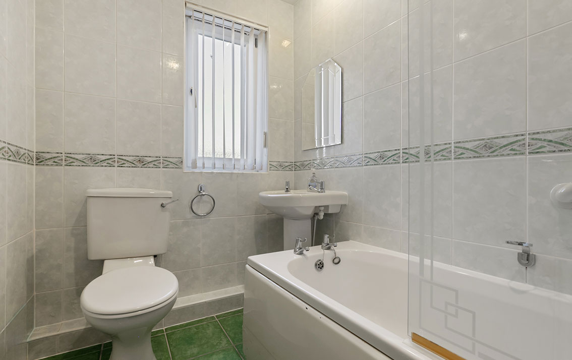 The fully tiled bathroom completes the accommodation and is fitted with a wash hand basin, WC and bath with wallmounted shower and glazed screen. Window to rear.