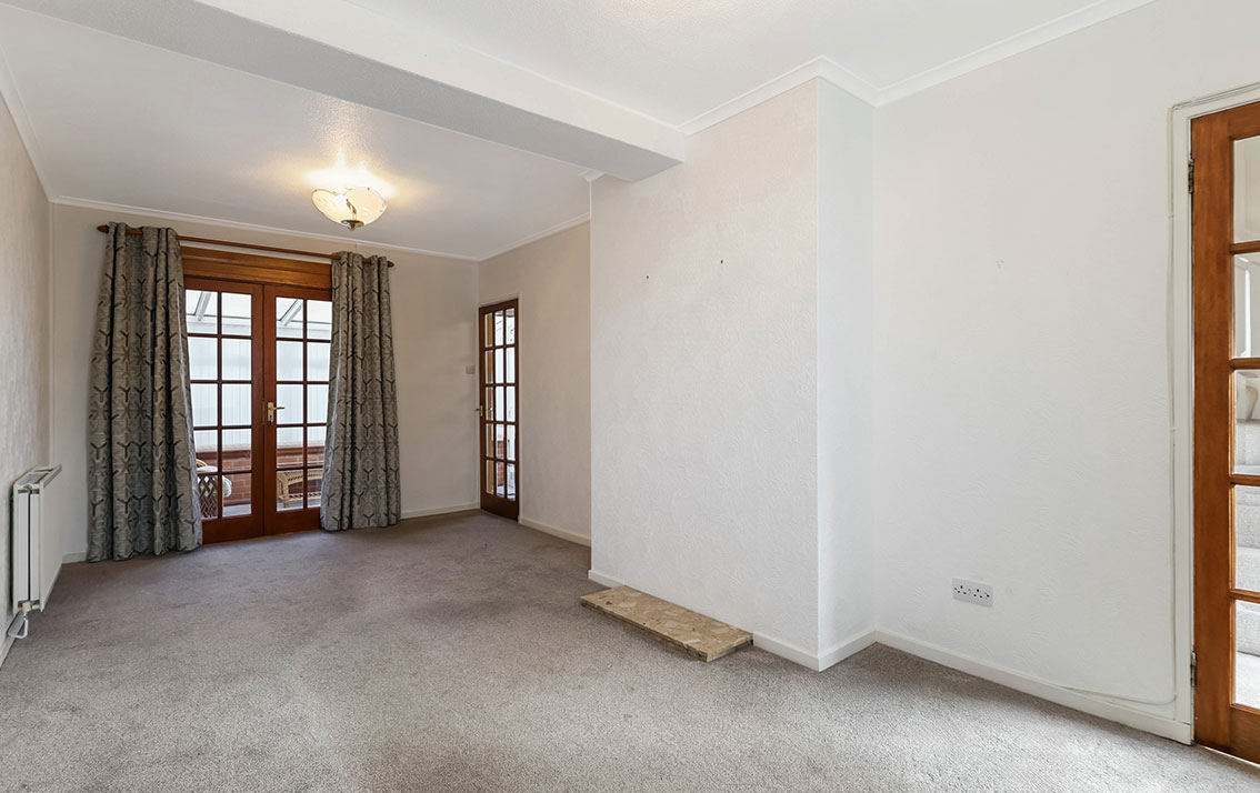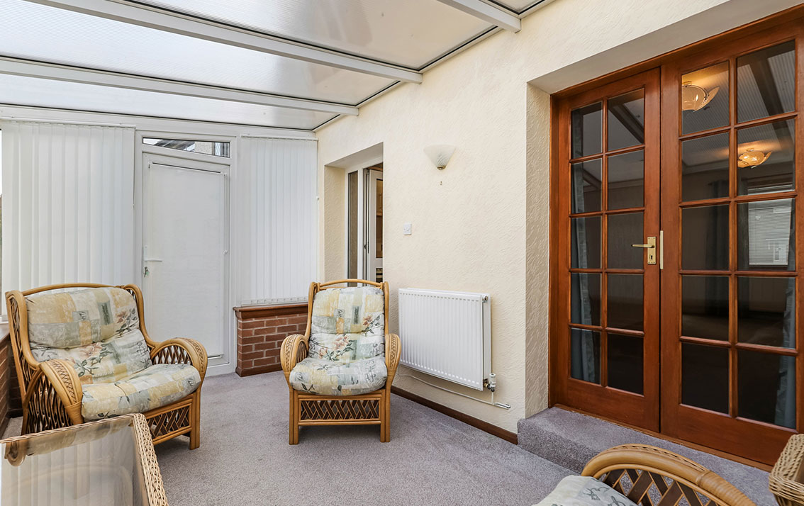 The bright and well-proportioned living room is situated to the front of the property with space for freestanding furniture and has a granite hearth. A door leads through to the kitchen. Astragalled French doors to the rear lead through to the spacious conservatory which has views over the garden and a door to the side. The furniture is included in the sale.