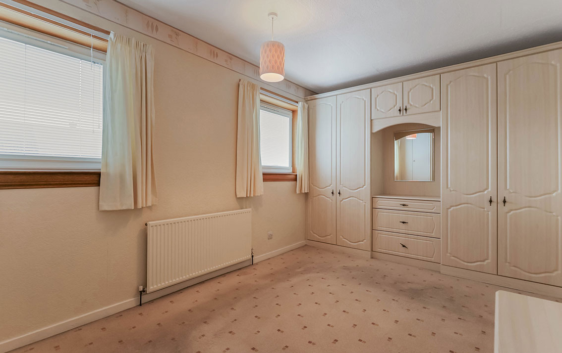 There is a double bedroom situated to the front of the property with twin windows and built-in wardrobes with a central dressing table. There is an additional overstair wardrobe.