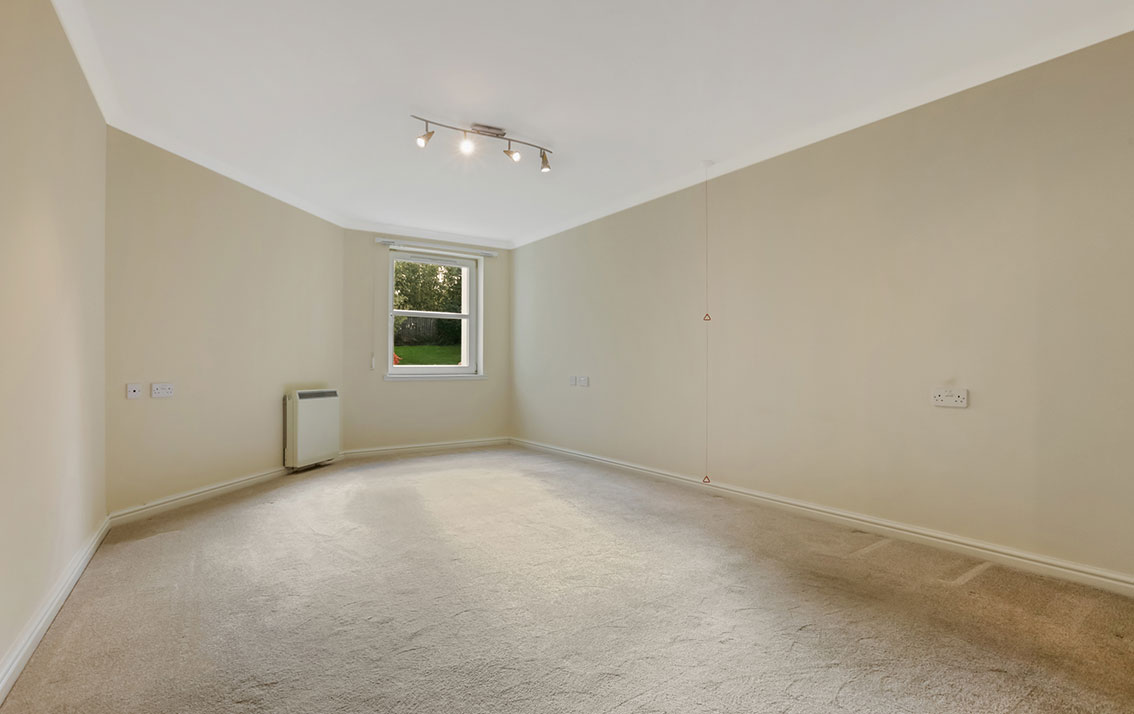 The bright and spacious double bedroom has a built-in mirror doored wardrobe and ample space for additional freestanding furniture. A window to the rear offers views to the communal gardens.