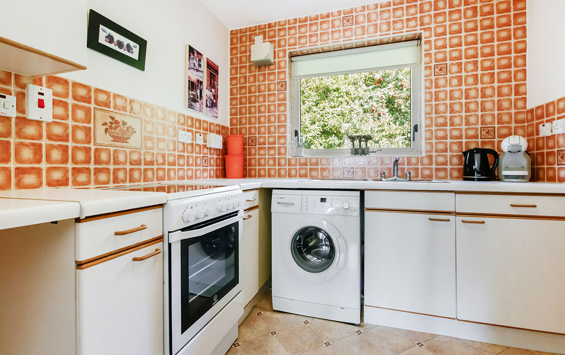 There is a kitchen to the rear, fitted with a range of wall and base units with stainless steel sink and drainer, coordinating worksurfaces and tiling to splashback. The electric cooker, fridge/freezer and washing machine are included in the sale but are not warranted.