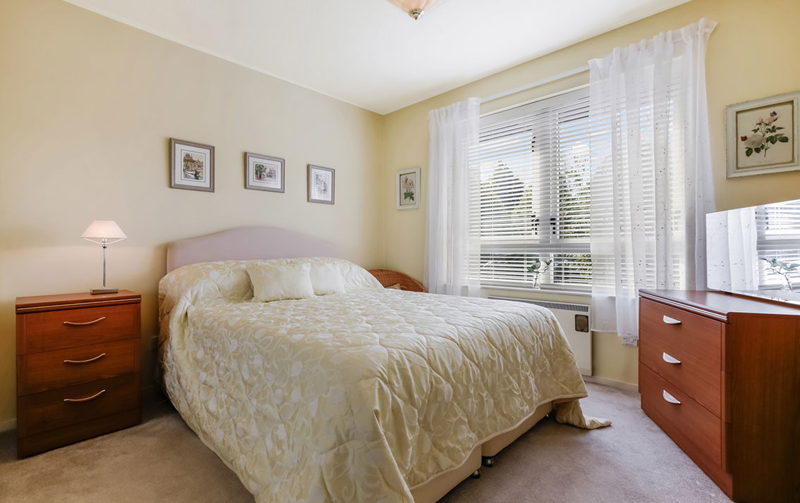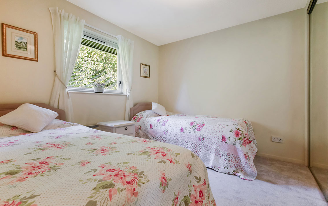 Bedroom 1 enjoys open aspects to the courtyard and has ample space for freestanding furniture and a built-in mirrored door wardrobe.