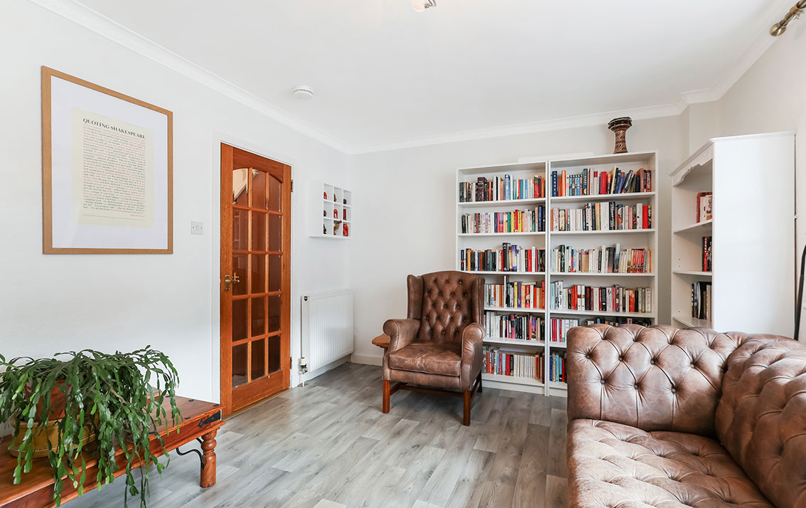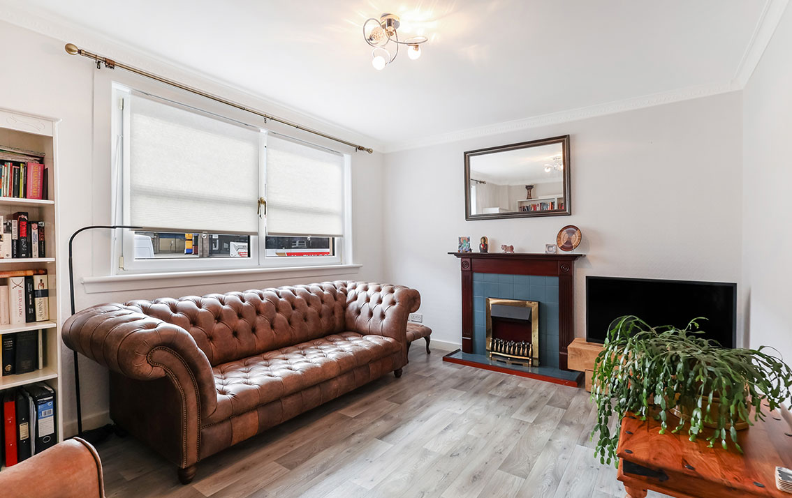 The bright and spacious living room has twin windows to the rear and an electric fire and surround both of which are included in the sale.