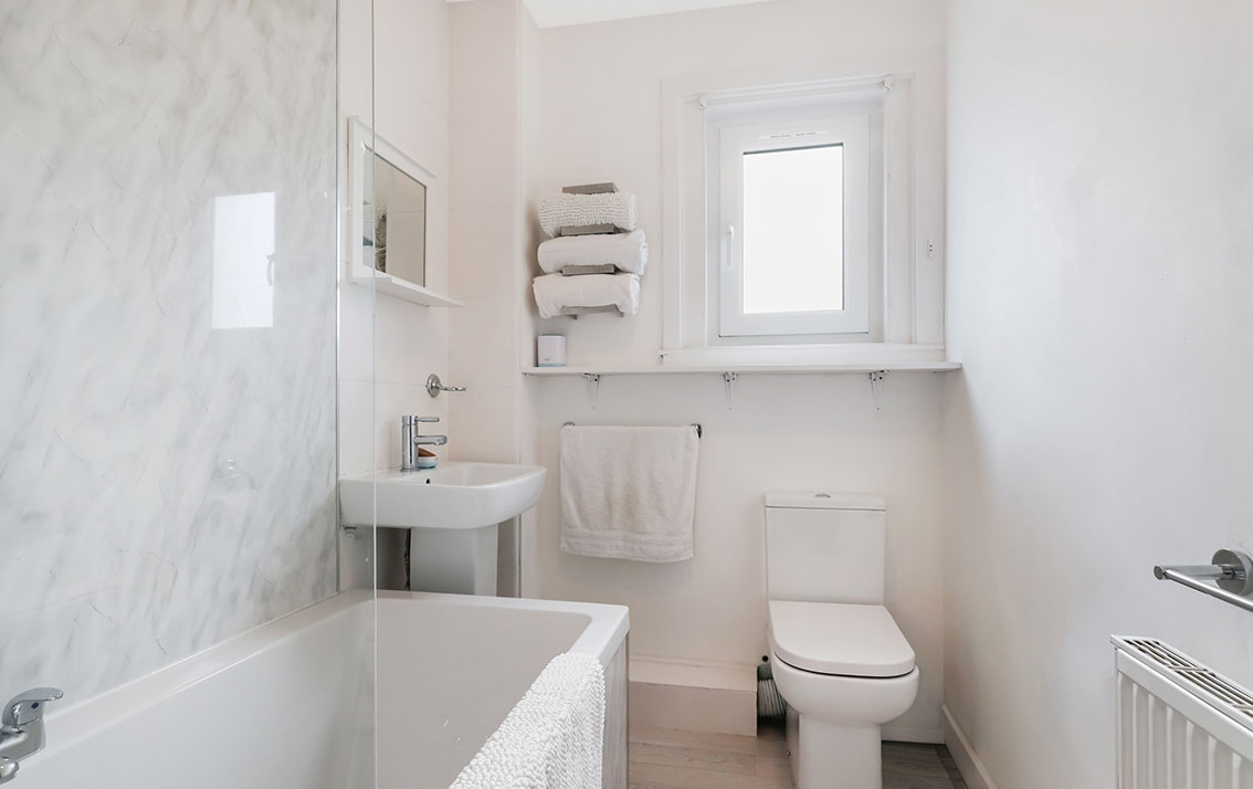 The bathroom completes the accommodation and is fitted with a white 3-piece suite with wash hand basin, WC and bath with wet wall panelling, Triton shower and glazed screen. The fittings are included in the sale.