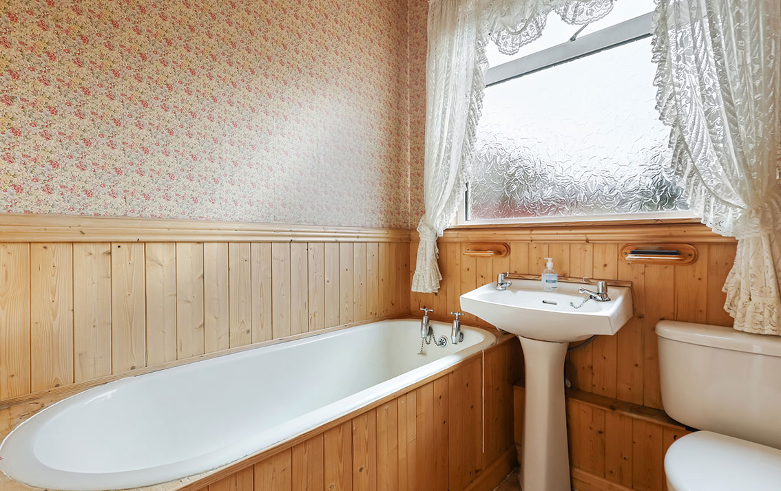 The bathroom completes the ground floor accommodation and is fitted with a wash hand basin, WC and bath. Window to rear.