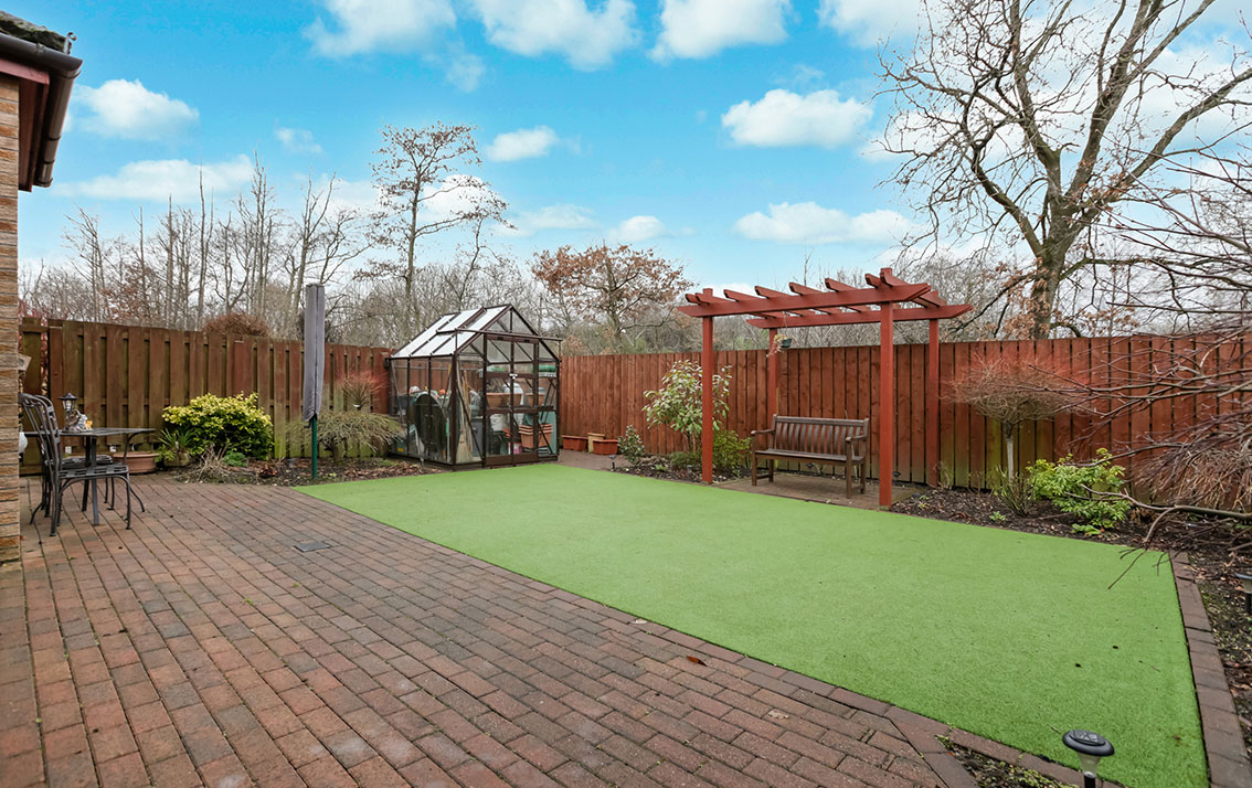 There are gardens to the front and rear. The front garden is chipped with a shrub bed. The garden to the rear has some shrub planting, an area of artificial lawn and a monobloc a patio. The greenhouse and pergola are included in the sale.