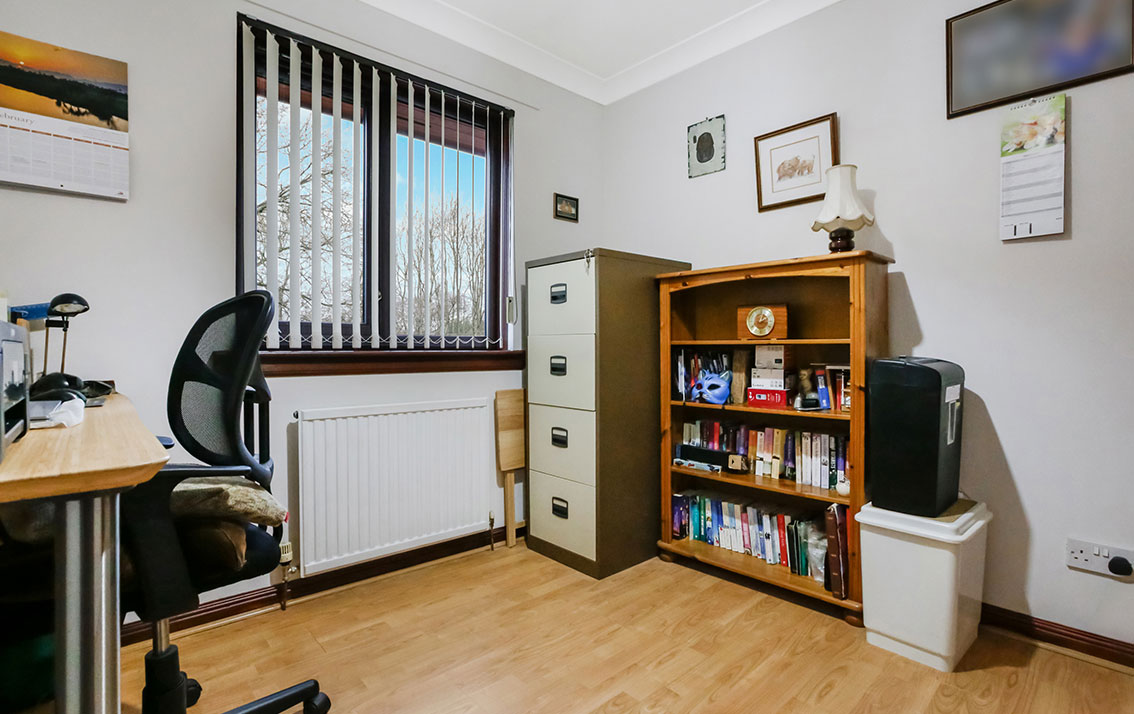 Bedroom 3, currently used as a home office, is to the rear with open aspects and a built-in wardrobe.