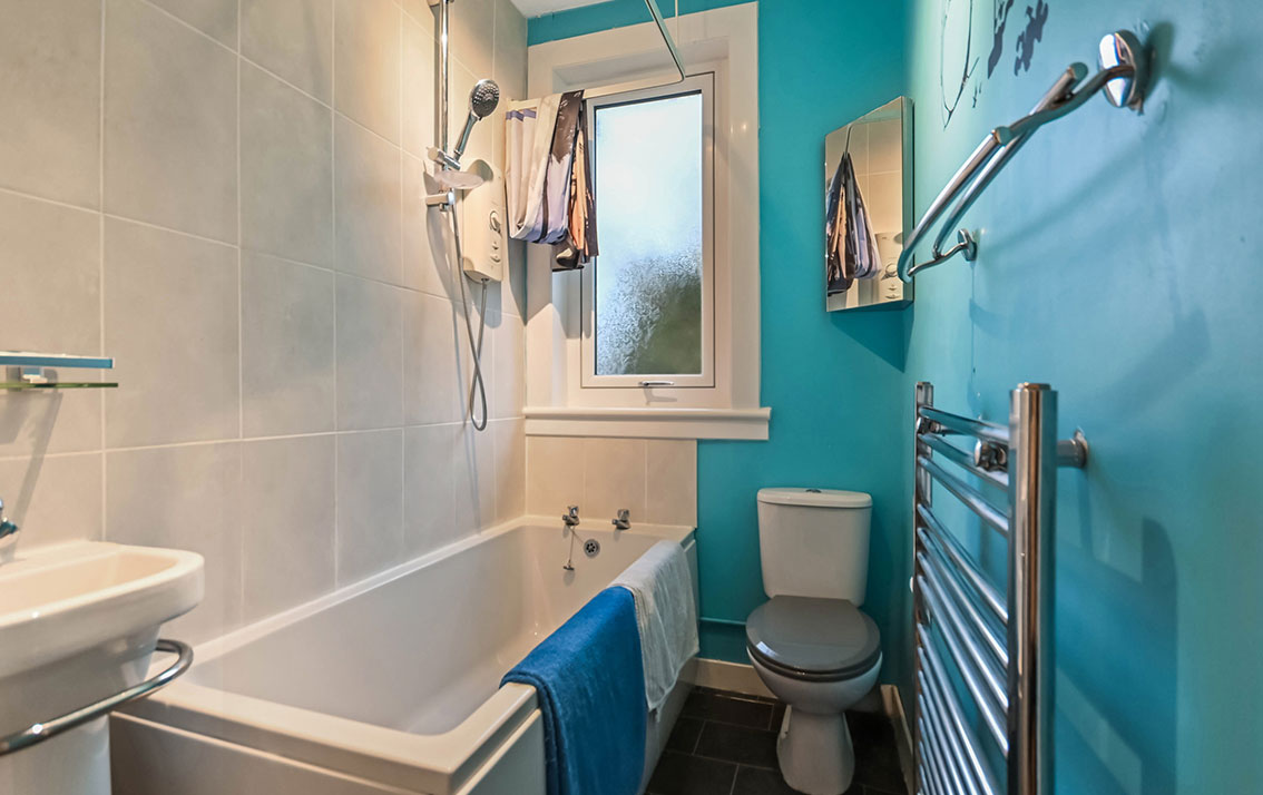The bathroom room completes the accommodation and is fitted with a 3-piece suite comprising wash hand basin, WC and bath with overbath shower, curtain and rail. Window to rear.