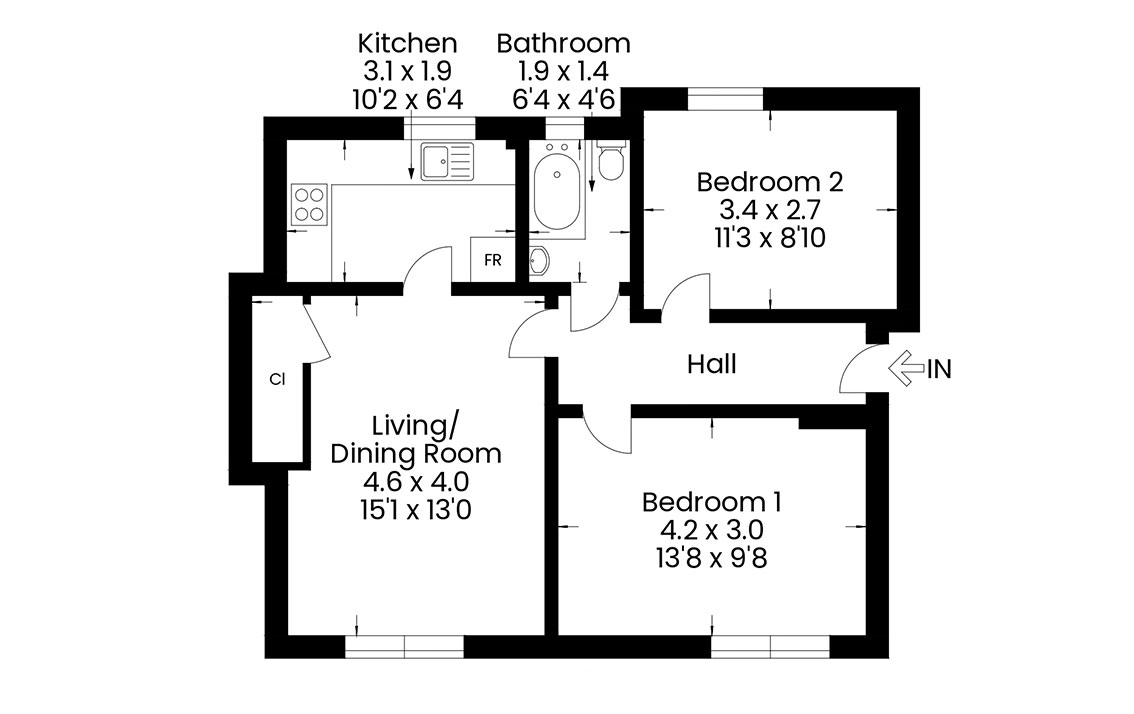 The property is accessed via stairs which lead to the entrance and into the hall with a cloaks rail and all rooms leading off.